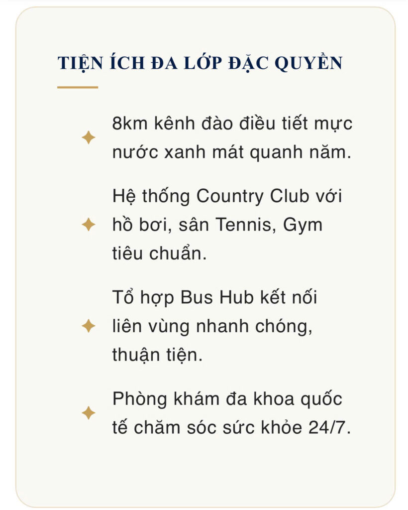 Nơi trải nghiệm những đặc quyền thượng lưu bên dòng sông Vàm Cỏ Đông.